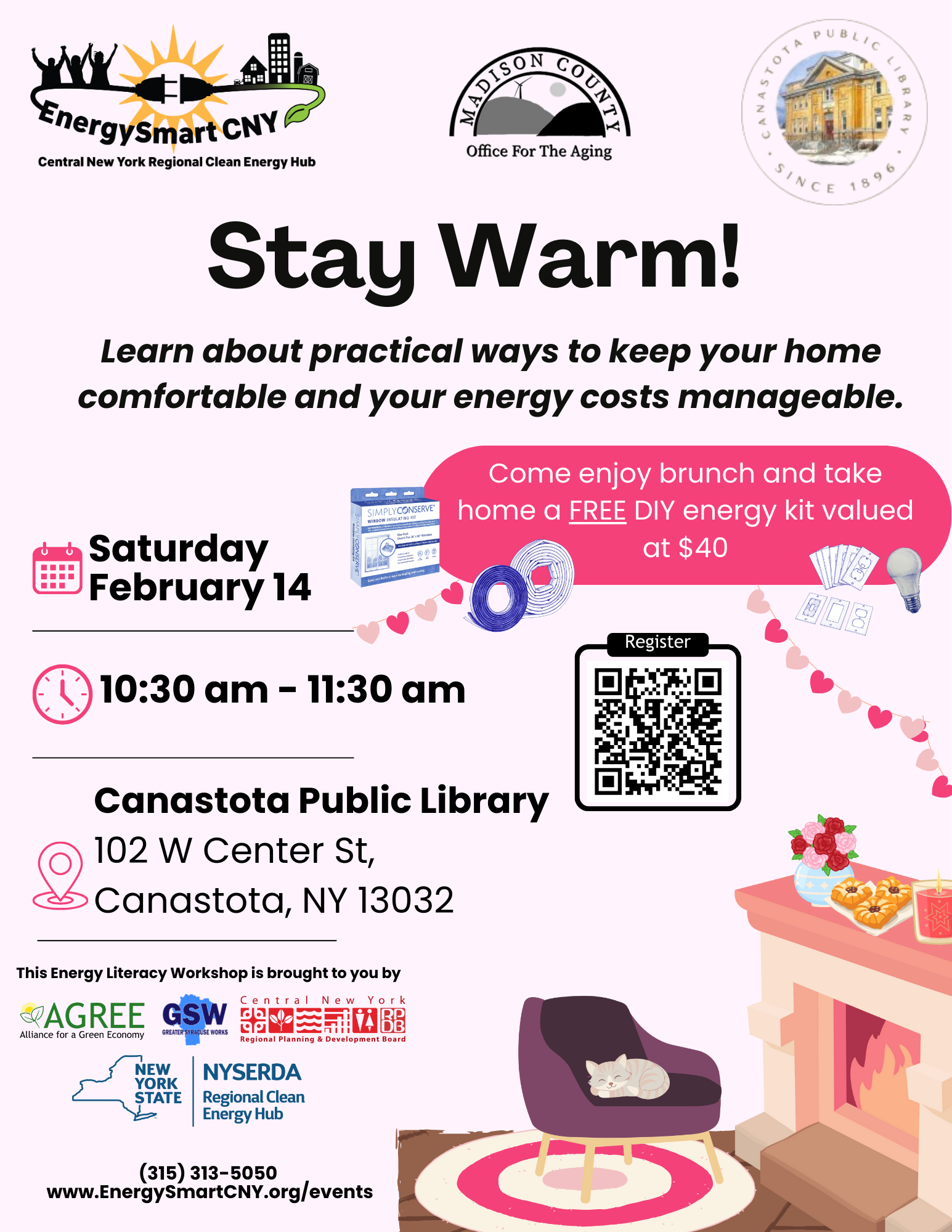 Canastota Public Library 102 W Center St, Canastota, NYJoin us in Canastota on Valentine's Day for an interactive workshop to learn about energy-saving tips and programs that can help you save money year-round, such as insulation, air sealing, […]